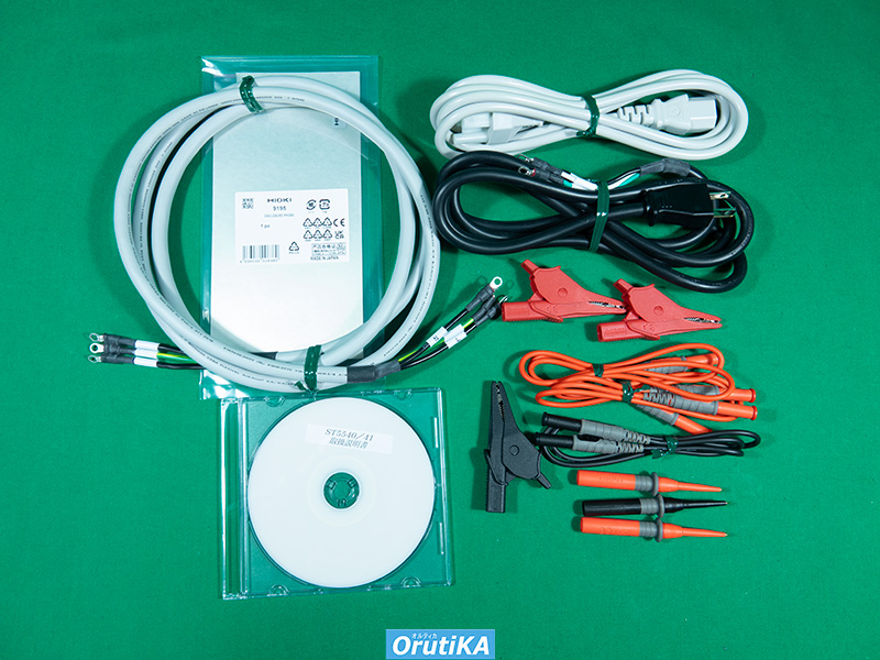 3P AC電源コード(AC-IN用) 3P AC電源コード(3Pメス-丸端子) 3P AC電源コード(丸端子-丸端子) 面接触プローブ(9195) テストリード(赤2・黒1) ワニ口アダプタ(赤2・黒1) ピンリード(赤2・黒1) |